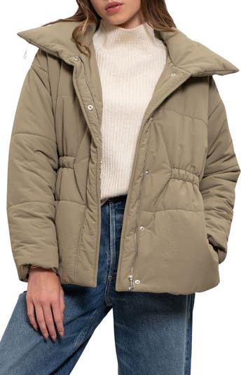 A wing collar punctuates this streamlined, channel-quilted jacket with an extra element of timeless sophistication.