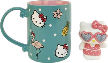 Bring a touch of Hello Kitty charm to your daily routine with this polka-dot stoneware mug and figurine set.