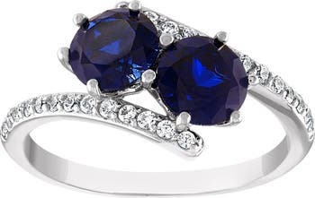 Put a glittering finish on your look with this fluid sterling silver bypass ring sparkling with lab-grown sapphires in both white and blue hues.