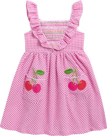 Cherry appliqués on the pockets enhance the charm of a cotton-blend dress that has your kiddo looking as sweet as ever.
