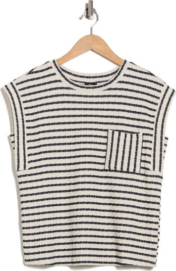 Variegated stripes lend visual interest to a cap-sleeve top that's knit from a cotton blend and covered in a rich texture to elevate everyday looks.