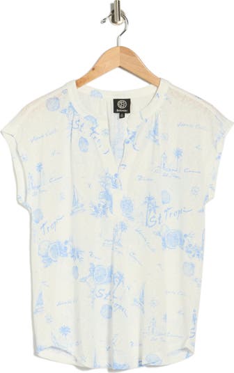 This split‑neck top features cap sleeves and a St.Tropez–inspired print, bringing an effortless, resort‑ready feel to a lightweight everyday style.