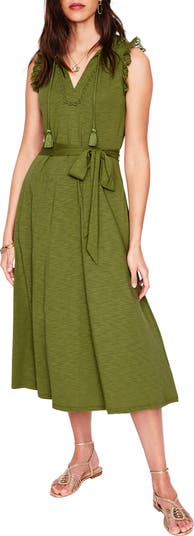Sweet embroidered-eyelet trim traces the edges of a slubbed-cotton-blend jersey dress that's cool and comfortable on the hottest days.