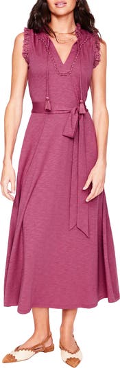 Sweet embroidered-eyelet trim traces the edges of a slubbed-cotton-blend jersey dress that's cool and comfortable on the hottest days.