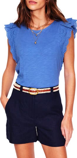 Eyelet-embroidered flutter sleeves flank a delicate top that's cut from soft, comfortable cotton in a loose, flattering fit.