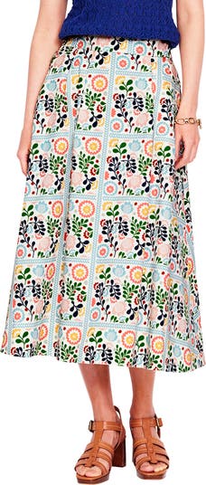 Brighten your skirt rotation with this boho A-line number, cut from stretchy cotton sateen with an elastic back waist, and printed in a folksy floral pattern.