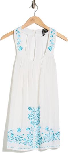 High-contrast embroidery lends a splash of color to a cover-up dress that's a must-have for beach-filled weekends.