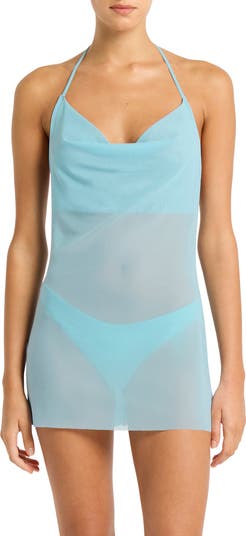 Effortlessly transition from out of the water to beachside café in this mini-length dress cut from airy mesh fabric and styled with an open back.