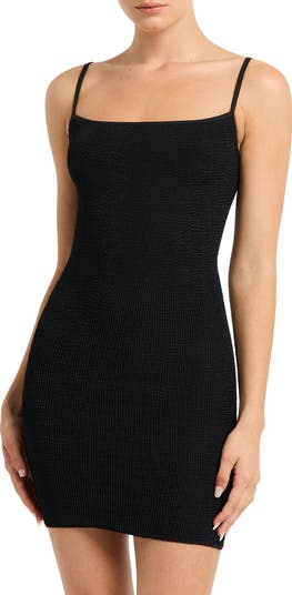 Effortlessly transition from beach to bar in this cover-up minidress made from crinkled fabric and styled with adjustable straps.