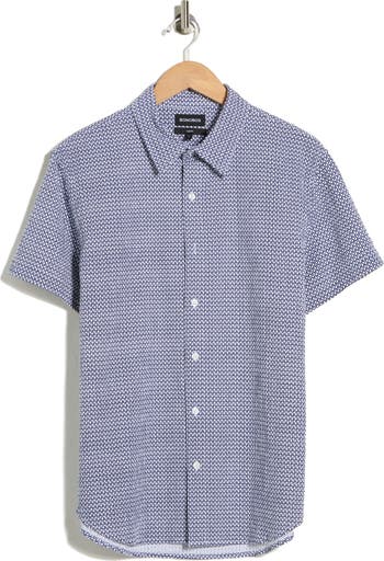 A geometric print brings modern attitude to this short-sleeve button-up shirt cut from a crisp, breathable stretch-cotton blend.
