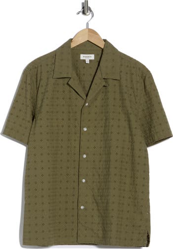 Lightweight cotton and airy embroidered eyelets are designed to keep you comfortable while looking sharp in a short-sleeve, button-front shirt framed by a notch collar.