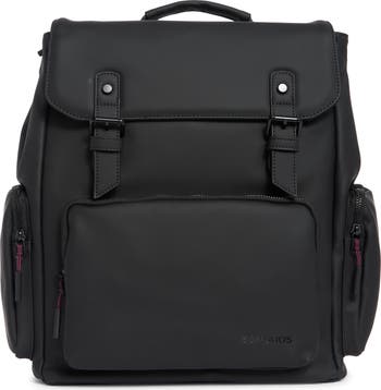 Dedicated storage and a rubberized finish keep your work essentials safely stashed in a well-organized backpack. Zip pockets and a trolley sleeve add practical, travel-friendly details to a polished carry-all.