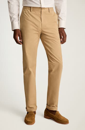 A flat front lends a clean, classic look to versatile chinos tailored from washed stretch cotton in a straight-leg silhouette.