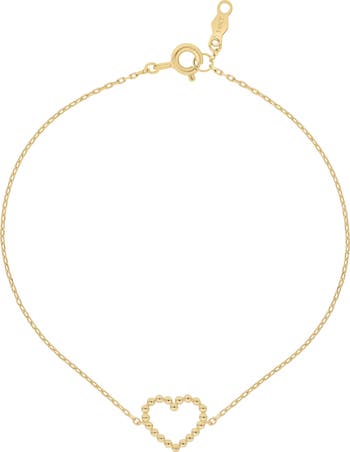 Add a lovely layer to your wrist with this 14-karat gold bracelet adorned with a beaded heart charm.