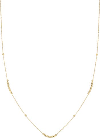 Textured spheres catch light stationed along a slender chain necklace handcrafted in Italy from gleaming 14-karat gold.