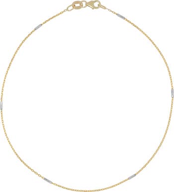 White gold bar stations bring contemporary appeal to this slim-chain anklet handcrafted in Italy from gleaming 14-karat gold.