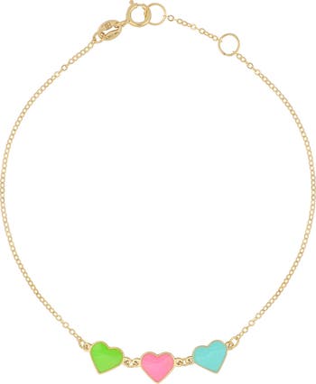 Colorful enamel sweetens this heart-charm bracelet handcrafted in Italy from gleaming 14-karat gold.