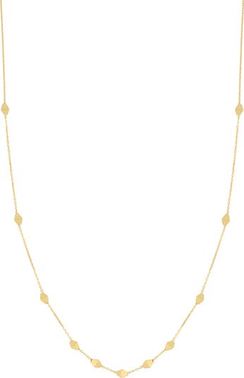 Geometric prisms catch light stationed along a slender chain necklace handcrafted in Italy from gleaming 14-karat gold.