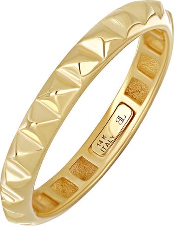 Pyramid stations bring instant glamour to this stacking ring handcrafted in Italy from gleaming 14-karat gold.