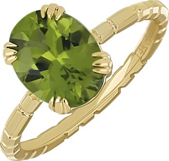 A triple pronged setting gives an avante garde feel to a handcrafted ring beaming with a verdant peridot.