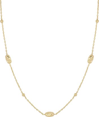 Diamond-cut bead stations bring symmetrical balance to this layering-friendly necklace handcrafted from high-polish 14-karat yellow gold.