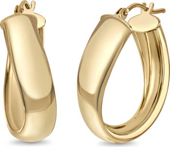 A slight twist in shape brings modern style points to signature hoop earrings handcrafted in Italy from warm 14-karat gold.
