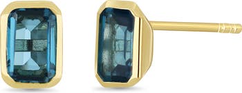 Baguette-cut stones lend a burst of color to these handcrafted stud earrings of 14-karat gold.