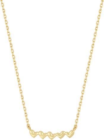 A line of asymmetric hearts brings romantic shine to this dainty necklace handcrafted in Italy from warm 14-karat yellow gold.