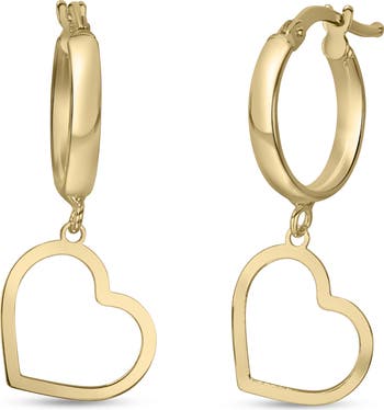 Open-heart charms bring romantic shine to these polished huggie-hoop earrings handcrafted in Italy from warm 14-karat gold.
