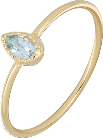 A pear-cut semiprecious stone brings dainty sparkle to this stackable ring handcrafted in Spain from warm 14-karat yellow gold.