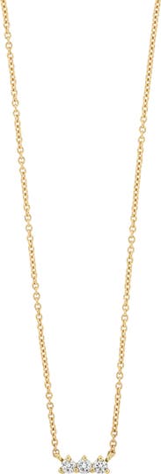 This warm 18‑karat gold chain necklace features a bar pendant formed by a trio of round diamonds.