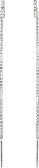 Diamond-pavé bars dangle from slender threader-style earrings in beautiful 18-karat white gold.