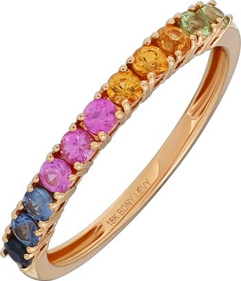 Rainbow-hued sapphires lend playful sparkle to this stacking 18-karat-gold ring handcrafted to catch light.