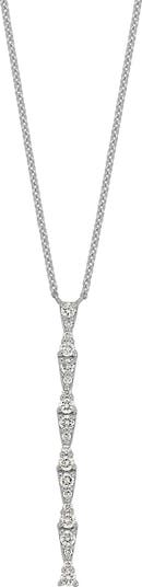 Bright and brilliant diamonds dazzle the elegant bar pendant of a fine 18K white gold necklace.