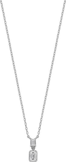 Dainty baguette-cut diamonds bring luxurious sparkle to a polished pendant necklace crafted from 18-karat white gold.