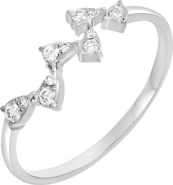 Dainty round diamond clusters illuminate this stackable band ring handcrafted from polished 18-karat white gold.