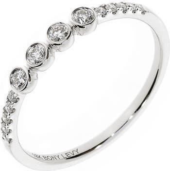 Bezel- and prong-set round diamonds lend brilliant shine to this stackable ring crafted from polished 18-karat white gold.