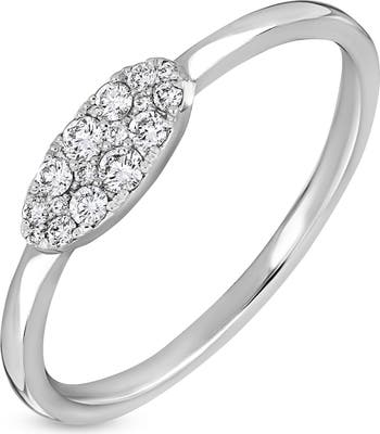 Sparkly pavé diamonds illuminate this dainty oval ring handcrafted from polished 18-karat white gold.