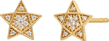 Pavé diamonds bring luxurious sparkle to these Star of David stud earrings handcrafted from warm 18-karat yellow gold.