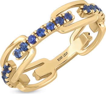 Prong-set round sapphires enrich this link-textured band ring handcrafted from warm 18-karat yellow gold.