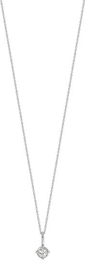 A solitaire-diamond pendant lends icy sparkle to this handcrafted necklace cast in 18-karat white gold.