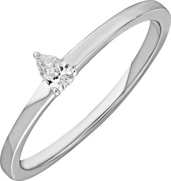 A singular diamond lends minimalist sparkle to a slender stacking ring handcrafted from icy 18-karat gold.