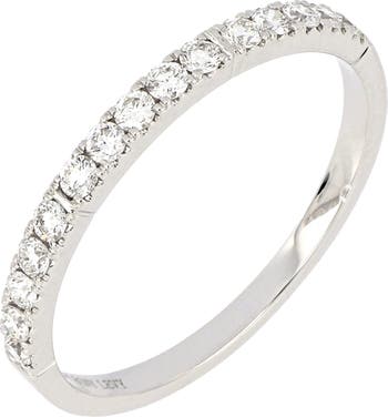 Pavé-set bright-white diamonds illuminate a polished, stackable band handcrafted from icy 18-karat gold.
