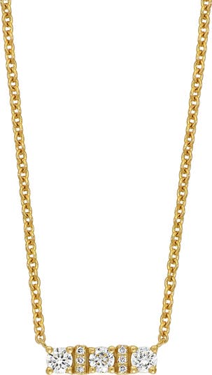 Nine round-cut diamonds dot a dainty modern bar pendant on this understated necklace that looks lovely whether worn solo or layered.