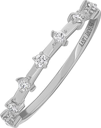Dainty bright-white diamonds deliver luxurious sparkle to a slender stacking ring handcrafted from 18-karat gold.