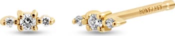 A trio of bright-white diamonds dazzle and delight on delicate stud earrings handcrafted from 18-karat gold to illuminate your lobes.