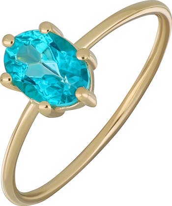 A prong-set tourmaline lends bright color and pretty sparkle to a delicate ring handcrafted in Spain from warm 14-karat gold.