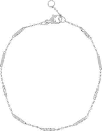 Dainty round diamonds illuminate the polished bar motifs of this elegant line bracelet handcrafted from 18-karat white gold.