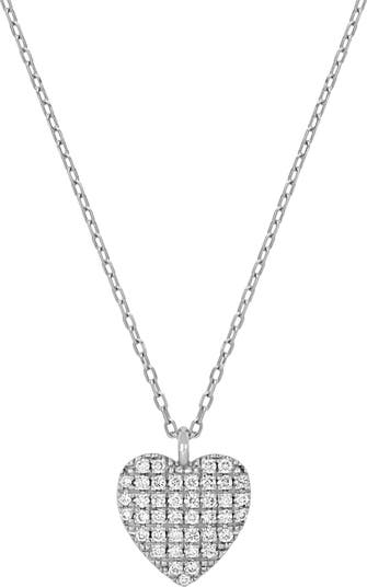 Add instant sweetness to your ensemble with this delicate chain necklace centered by a heart-shaped pendant adorned with dazzling diamonds.