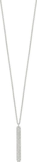 This handcrafted necklace is centered by an elongated pendant glittering with diamond pavé.